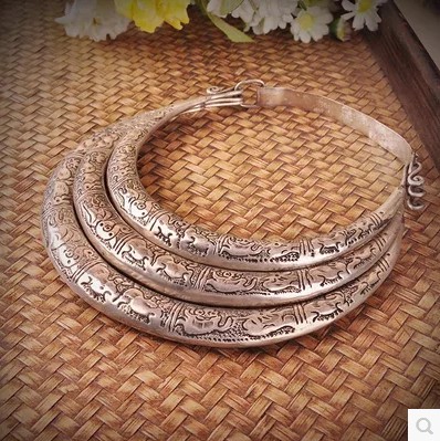 苗银项圈,首饰类都是手工制作、烧制,亲拿到的货有黑色的地方并不是脏的,而是故意用蜡做旧的,而且苗银饰品放久以后会因为氧化作用导致泛黄、泛黑等变色,并不是质量问题