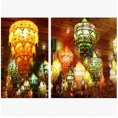 手工艺镜片麻布拼色灯罩瑜珈馆酒吧灯笼拉巴布灯四层