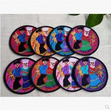 贵州民族特色苗绣杯垫/刺绣家居茶垫(对)