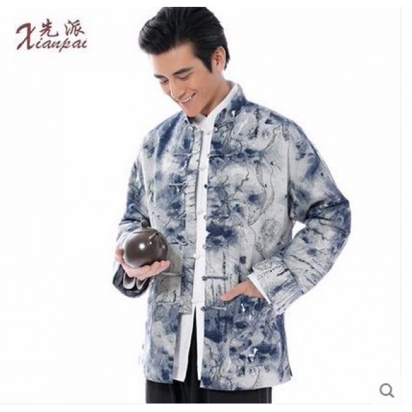 • 商品名称:亚麻中式礼服时尚中国风青年外套水墨艺术盘扣