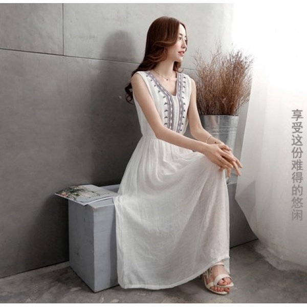 • 商品名称:2015夏无袖棉麻连衣裙女民族风薄款连衣裙刺绣长裙女