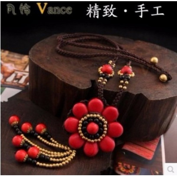 • 商品名称:高档手工编织棉麻饰品松石花朵吊坠云南民族风特色项链毛衣链