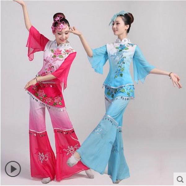 • 商品名称:古典舞扇子舞演出服2015新款女腰鼓服舞台伞舞表演服秧歌舞蹈服装