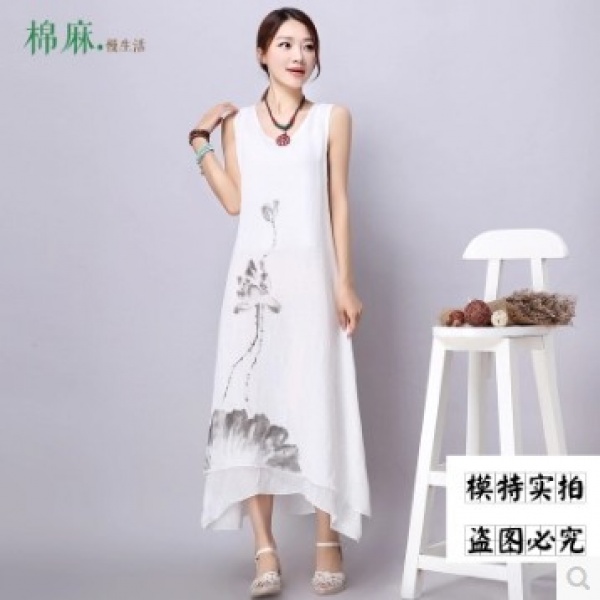 • 商品名称:中国风水墨手绘双层背心长裙宽松棉麻连衣裙