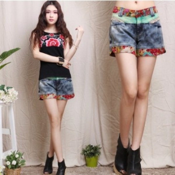 • 商品名称:新款拼接印花短牛仔布裤短裤热裤青垮裤