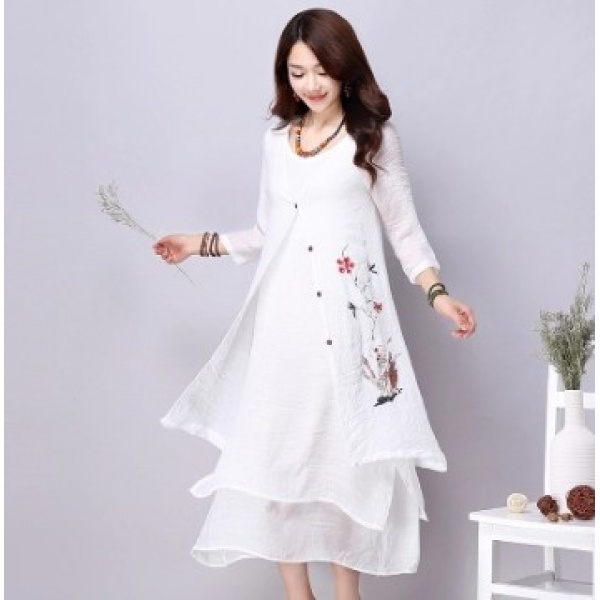 • 商品名称:复古棉麻纯色中长款系带薄款印花披肩外套开衫