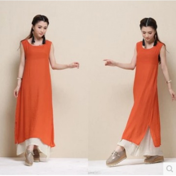 • 商品名称:棉麻原创文艺范女装不规则宽松连衣裙亚麻无袖背心长裙