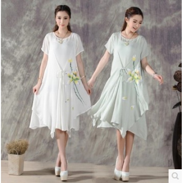 • 商品名称:文艺小清新连衣裙棉麻民族风复古文艺长裙 两件套装