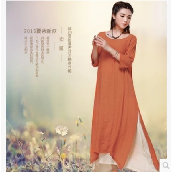 • 商品名称:棉麻连衣裙夏长裙2015夏装新款女文艺范短袖显瘦夏季裙子