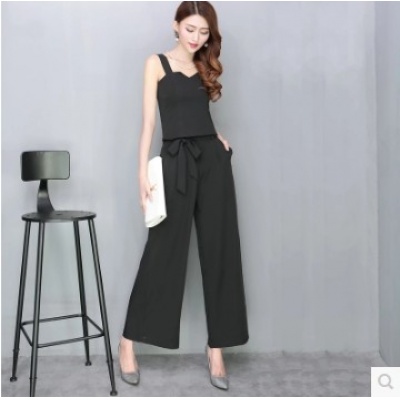 • 商品名称:名媛无袖拉链短款上衣两件套女夏阔腿长裤套装
