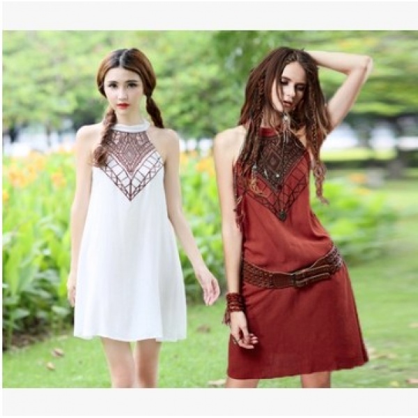 • 商品名称:夏装新款女民族风 刺绣花A型背心 连衣裙