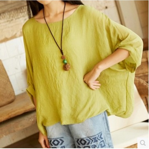 • 商品名称:夏装新款短袖亚麻上衣宽松大码棉麻蝙蝠袖t恤女打底衫