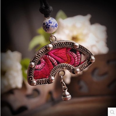 • 商品名称:苗绣刺绣绣花扇子项链时尚手工老绣月儿毛衣链