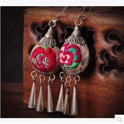 材料:做旧苗银+手工绣片