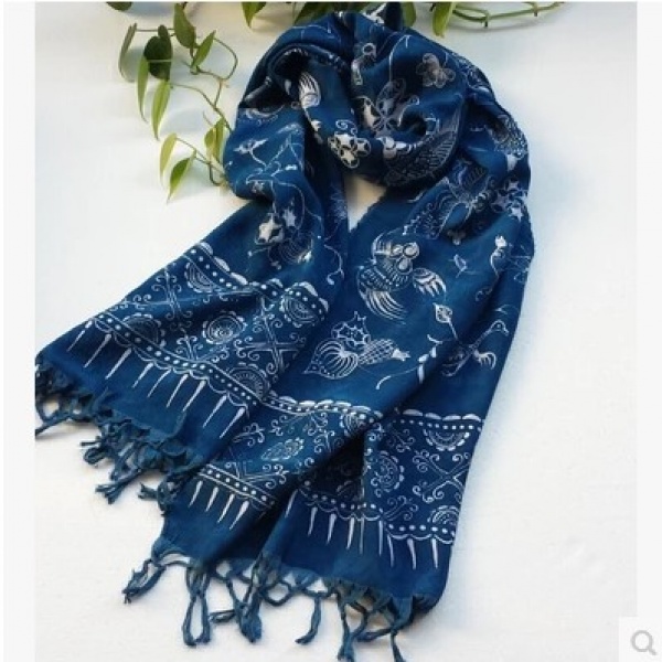 品名:丹寨纯棉纯手工蜡染长围巾