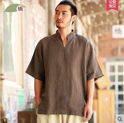 • 商品名称:中国风亚麻短袖衬衫中式立领宽松