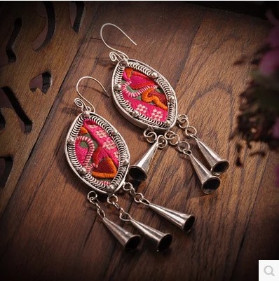 材料:做旧苗银+手工绣片