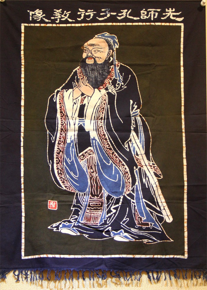 名称:孔子 手绘蜡染画 布艺壁挂画 孔子画像 工艺品 客厅装饰品