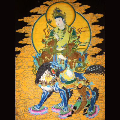 重彩画重彩技术跟蜡染工艺结合的工艺品,是用优质白布在染缸里用靛蓝(苗族专用染料)染成深蓝色。然后蜡染师傅在上面绘出各种艳丽的图形。在装婊于下方有穗穿上珠子的布上。它具有颜色丰富、艳丽,线条突出,色彩丰厚,少数民族风情和历史文化,具有浓郁的民族的地方特色。