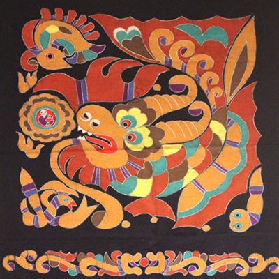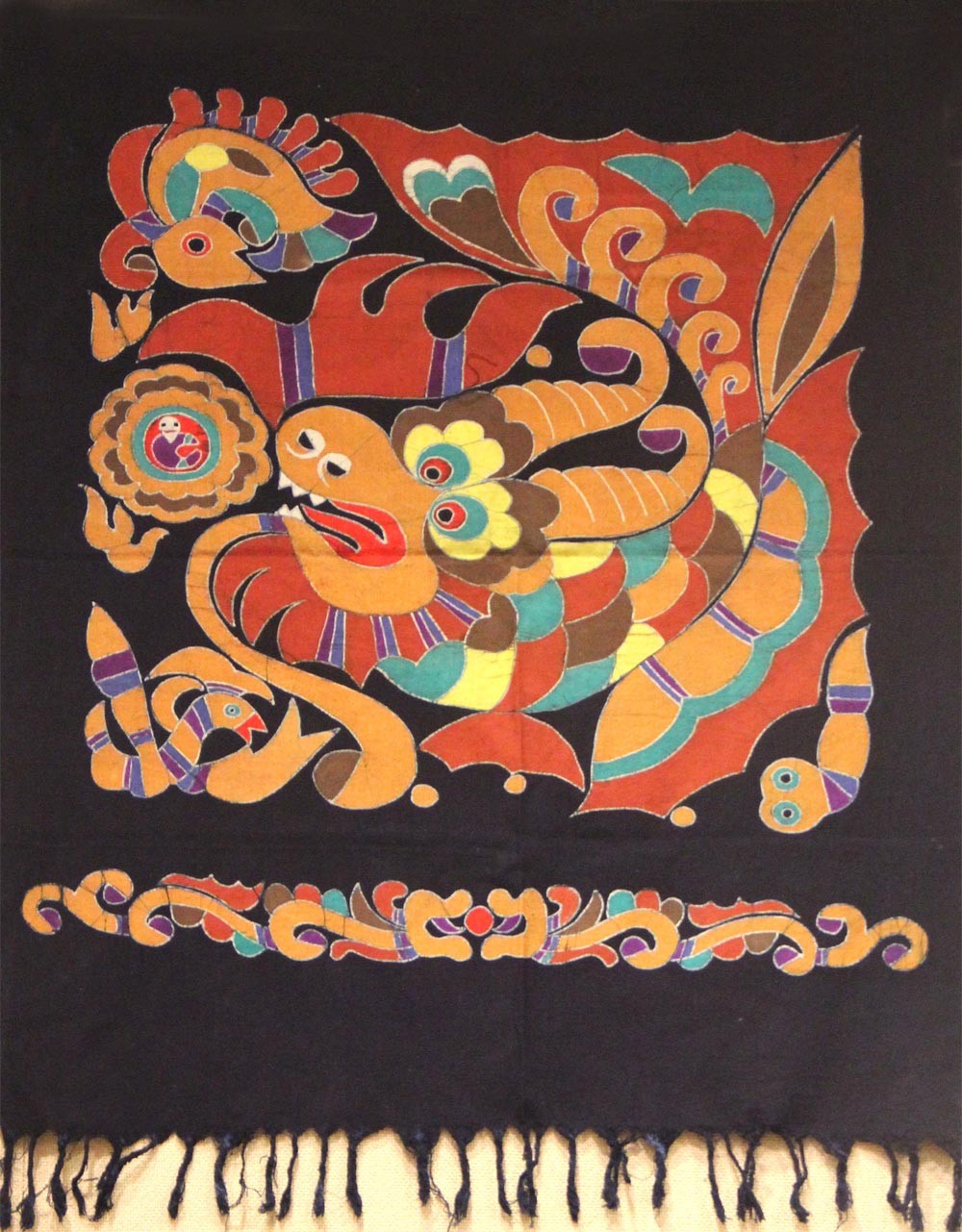 名称:鱼龙传说 手绘蜡染画 布艺壁挂画 工艺品 客厅装饰品