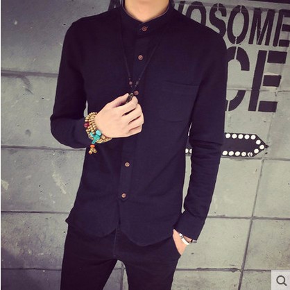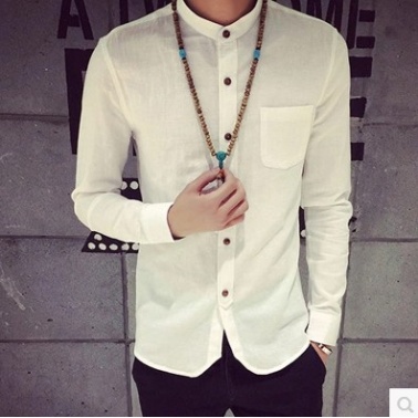 • 商品名称:2015秋款男士衬衫修身青年棉麻衬衣立领长袖