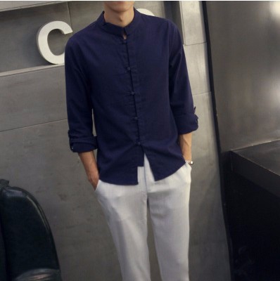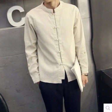 • 商品名称:中国风盘扣衬衫男中式立领唐装复古棉麻上衣文艺青年