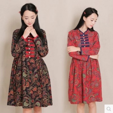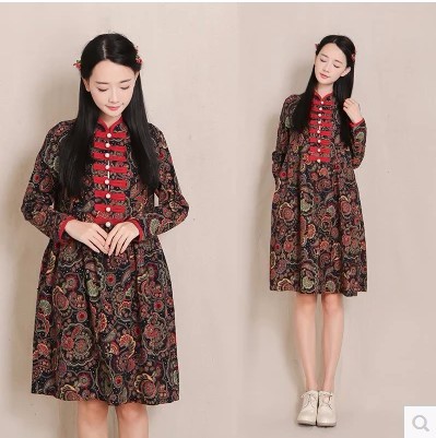 • 商品名称:中国风长袖连衣裙盘扣文艺复古旗袍裙
