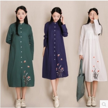 • 商品名称:文艺范原创长袖绣花亚麻棉麻衬衫裙上夏女中长款开衫