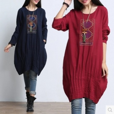 • 商品名称:民族风文艺胖MM褶皱女装棉麻中长款大码连衣裙